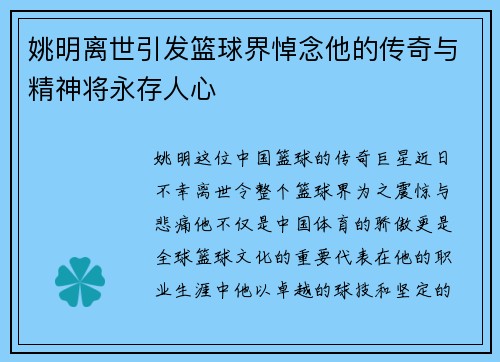 本文将对中国篮球传奇人物姚明近期的比赛表现进行回顾与分析,并展望他未来的发展方向。姚明作为一名优秀的球员和篮球管理者,在赛场上展示了卓越的技术和领导力。在过去的一段时间里,姚明在不同赛事中的表现引发了广泛关注,他不仅为球队贡献了重要的分数,还通过自身的经验帮助年轻球员成长。接下来,文章将从几个方面详细探讨他的比赛状态、战术调整、对年轻球员的影响以及未来发展规划,以期全面了解这位伟大运动员在新时代背...