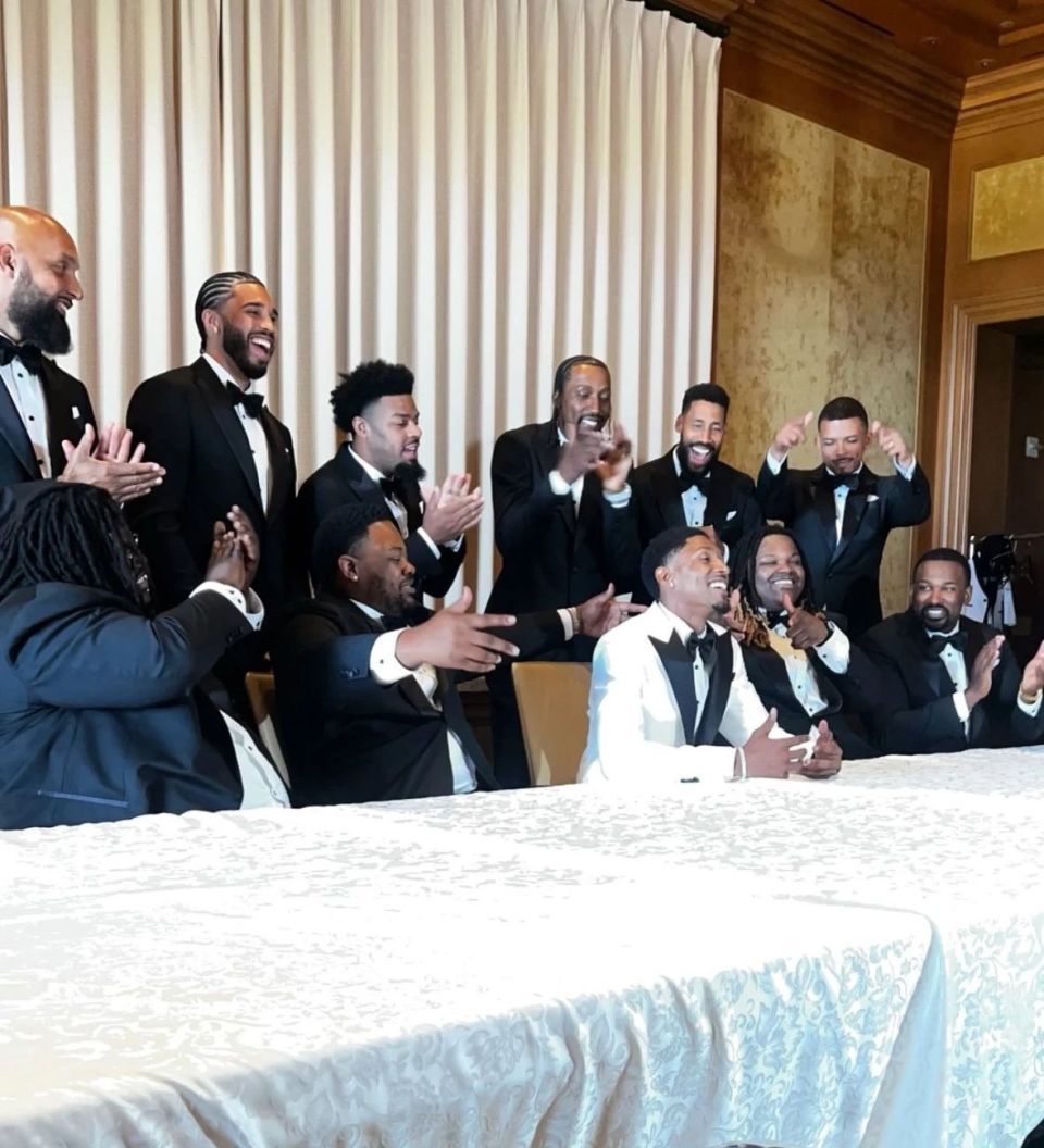 比尔和妻子举行婚礼,众多NBA球员前来捧场,包括塔图姆、杜兰特、沃尔、波普、奎因-库克等。最兴奋的当属塔图姆,他已经脱掉保护靴,在婚礼上疯狂跳舞。今年5月中旬,塔图姆接受了右跟腱断裂修复手术,看起来恢复得不错。